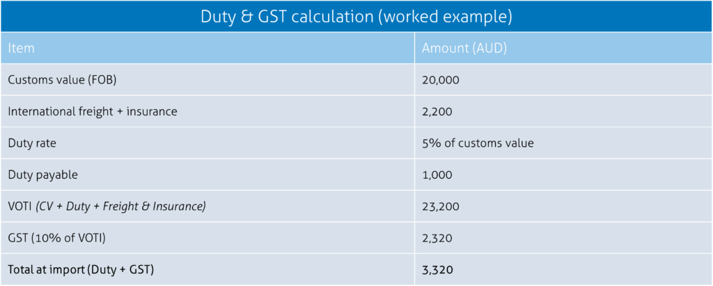 For an overview of import costs (GST and other taxes), see ABF’s page here.